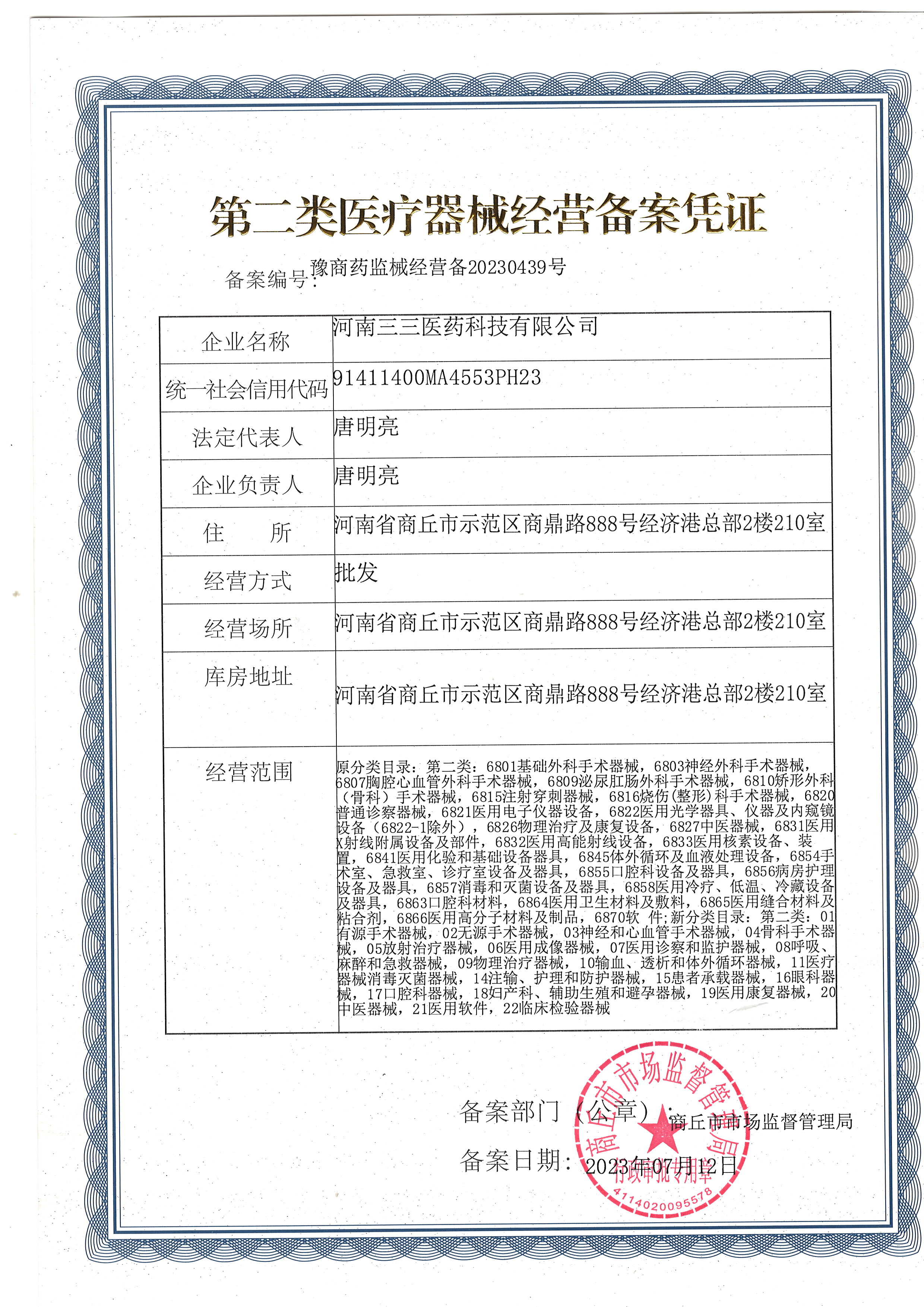三三医药二类医疗器械备案